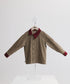 This shirt, with its retro and chic design, perfectly interprets the spirit of adventure in autumn and winter in an elegant manner. The classic khaki corduroy material combined with the burgundy lapel and cuff design is called crossing mountains and ridges, creating a strong autumn and winter forest atmosphere. The pocket design on the right arm adds practicality and personalized elements, suitable for children to wear in autumn and winter. It is an ideal choice for exploring nature or attending special occasions.