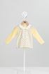 上衣採用有機棉製成,領口以交叉蝴蝶結設計,甜美吸睛。點點布料拼接撞色袖子,增添活潑層次,門襟荷葉邊細節,為日常造型添上一抹優雅。舒適好穿,簡約卻不單調。