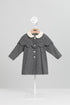 女寶寶長外套以有機棉毛毛材質打造,柔軟溫暖、呵護寶貝肌膚。外套搭配可拆式雙層花朵造型披肩,帶有立體輪廓與層次感,貝殼領與亮面鈕釦相互呼應,呈現低調又可愛的光澤感。設計兼具實穿與造型感,從日常外出到正式場合都合適。