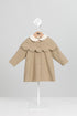 女寶寶長外套以有機棉毛毛材質打造,柔軟溫暖、呵護寶貝肌膚。外套搭配可拆式雙層花朵造型披肩,帶有立體輪廓與層次感,貝殼領與亮面鈕釦相互呼應,呈現低調又可愛的光澤感。設計兼具實穿與造型感,從日常外出到正式場合都合適。